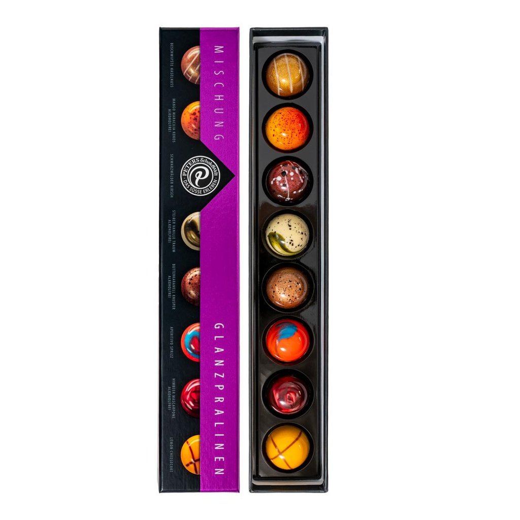 Die Glanzpralinen-Mischung mit & ohne Alkohol vereint Vielfalt und Raffinesse in einer edlen Auswahl. Feine, alkoholfreie Kreationen treffen auf Pralinen mit edlen Likörfüllungen – jede ein glänzendes Meisterwerk mit harmonischen Aromen. Perfekt als Geschenk oder für den besonderen Genussmoment in Gastronomie, Hotellerie und Patisserie.