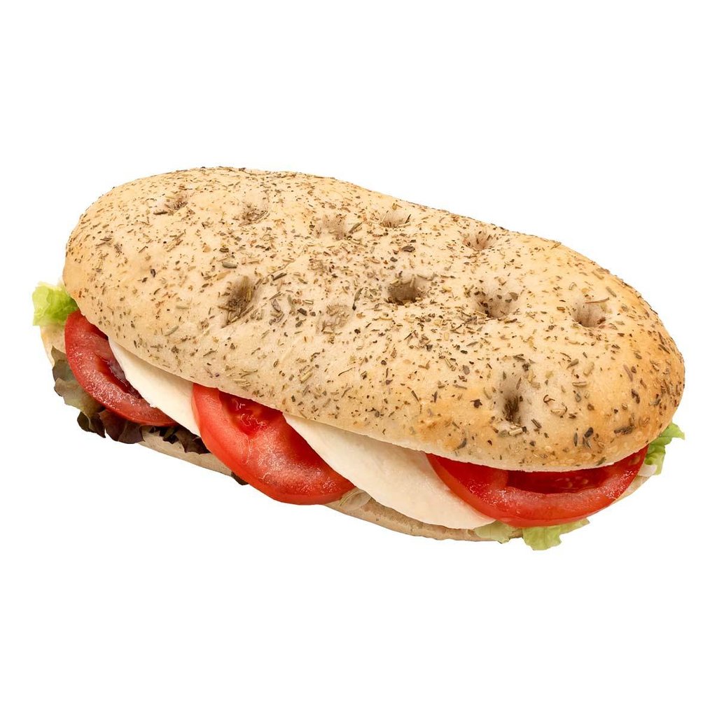 Das rustikale Weizenpanini mit einem Dekor aus Kräutern der Provence eignet sich mit einer lockeren, saftig-weichen Krume ideal für mediterrane Sandwichideen. Einfach auftauen lassen, nach Belieben belegen und ab in den Kontaktgrill.