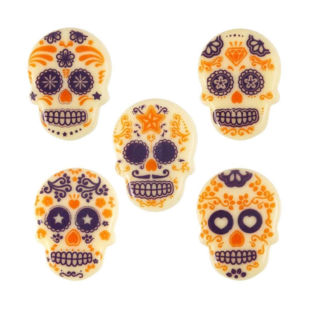 Die feine, zartschmelzende Schokolade eignet sich ideal zum kreativen Verzieren und Dekorieren von Gebäck oder Desserts. Das detailreiche Motiv passt besonders gut in die Halloweenzeit und verleiht mit wenig Aufwand Ihren süßen Kreationen eine schaurig-schöne Note und verwandelt diese zu eindrucksvollen Highlights.