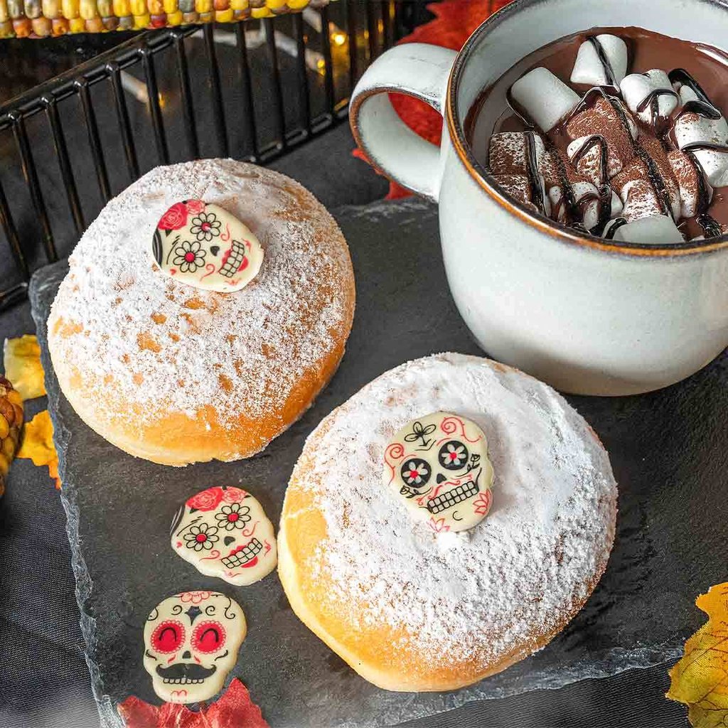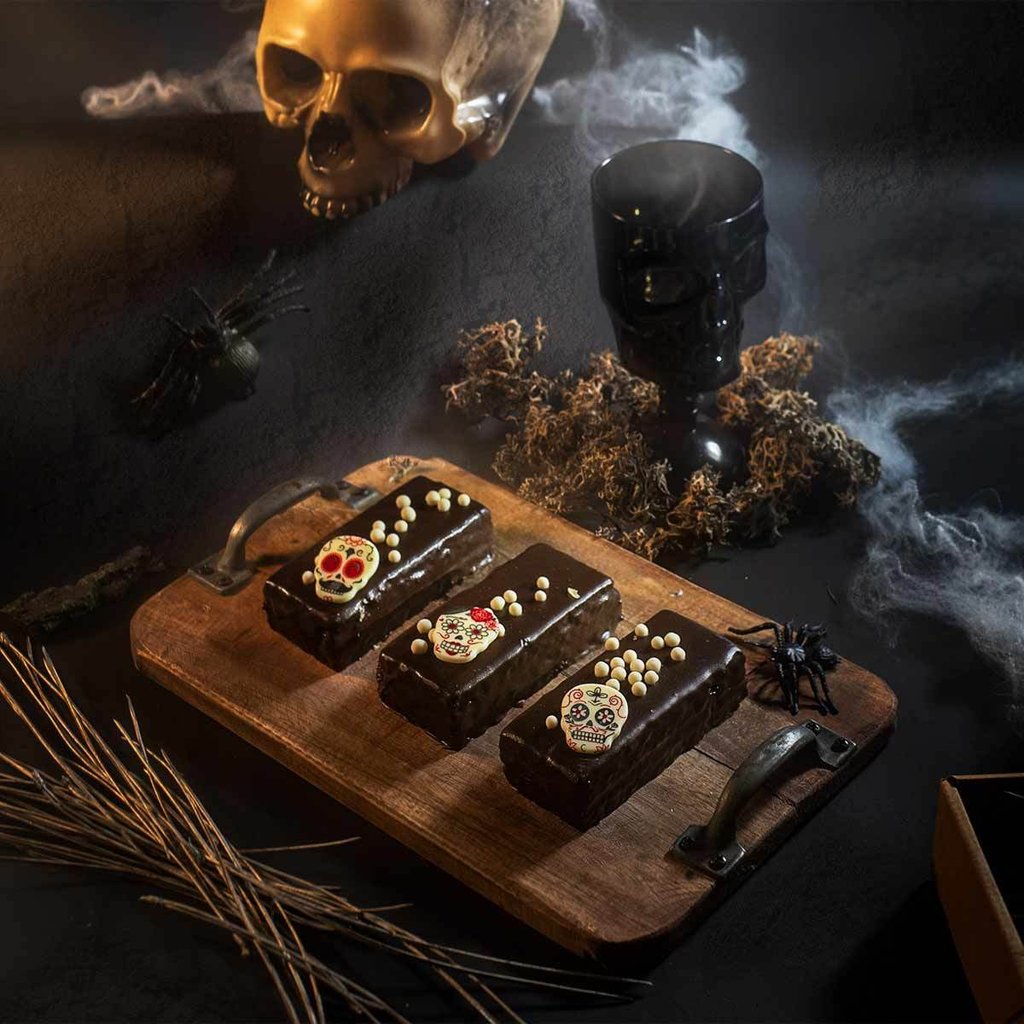Die feine, zartschmelzende Schokolade eignet sich ideal zum kreativen Verzieren und Dekorieren von Gebäck oder Desserts. Das detailreiche Motiv passt besonders gut in die Halloweenzeit und verleiht mit wenig Aufwand Ihren süßen Kreationen eine schaurig-schöne Note und verwandelt diese zu eindrucksvollen Highlights.