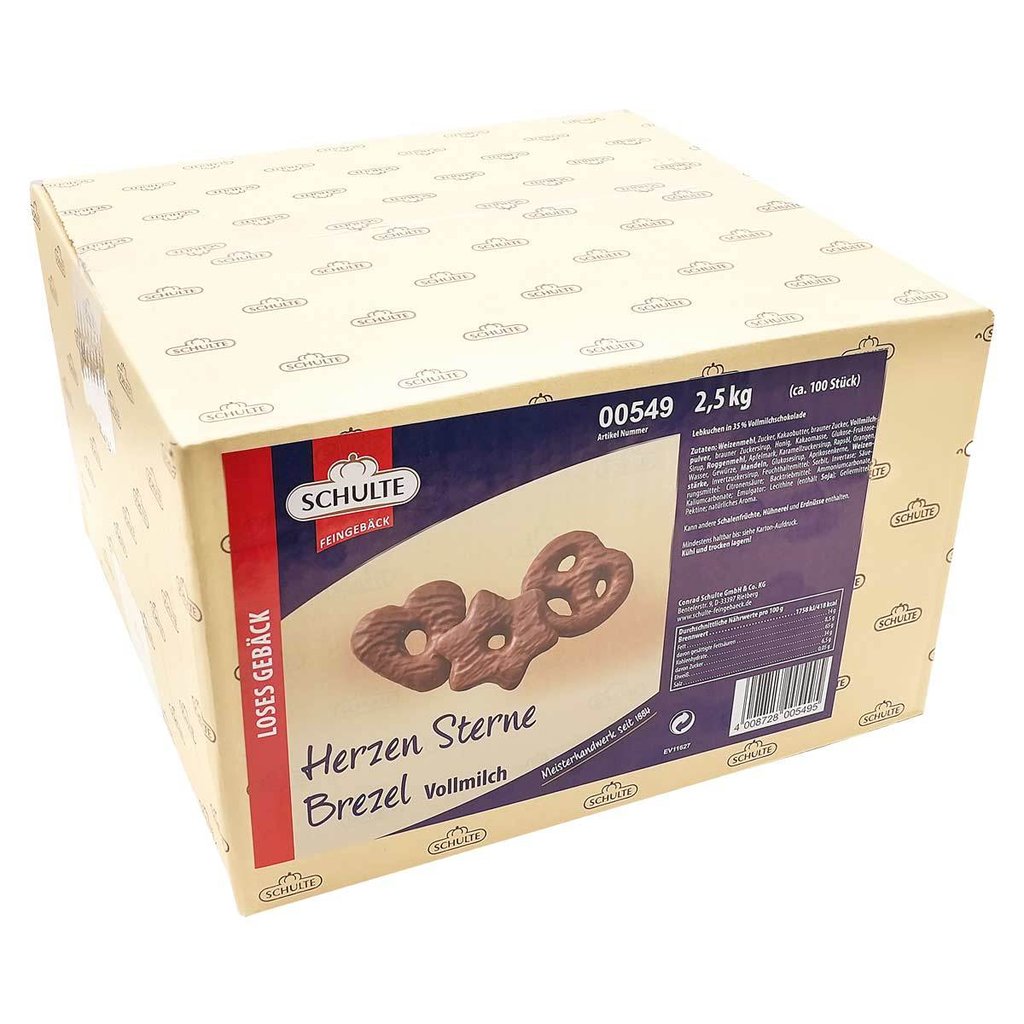 Ein Klassiker in Vollmilchschokolade. Die leckeren Schulte Herzen-Sterne-Brezel Vollmilch gehören zur Weihnachtszeit einfach dazu. Mit ihrem saftigen Biss und dem würzigen Geschmack sind die süßen Lebkuchen ein echter Garant für weihnachtliche Stimmung. Der Überzug aus feiner Vollmilchschokolade macht sie zu einem schokoladigen Genusserlebnis.