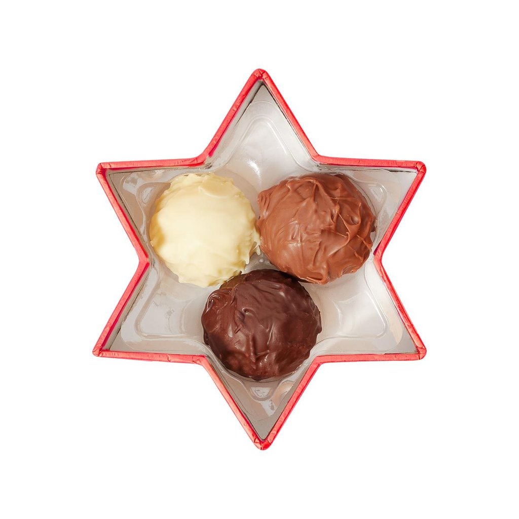 Die drei feinen Trüffel sind besonders ansprechend in einer weihnachtlichen Sterne-Box verpackt.