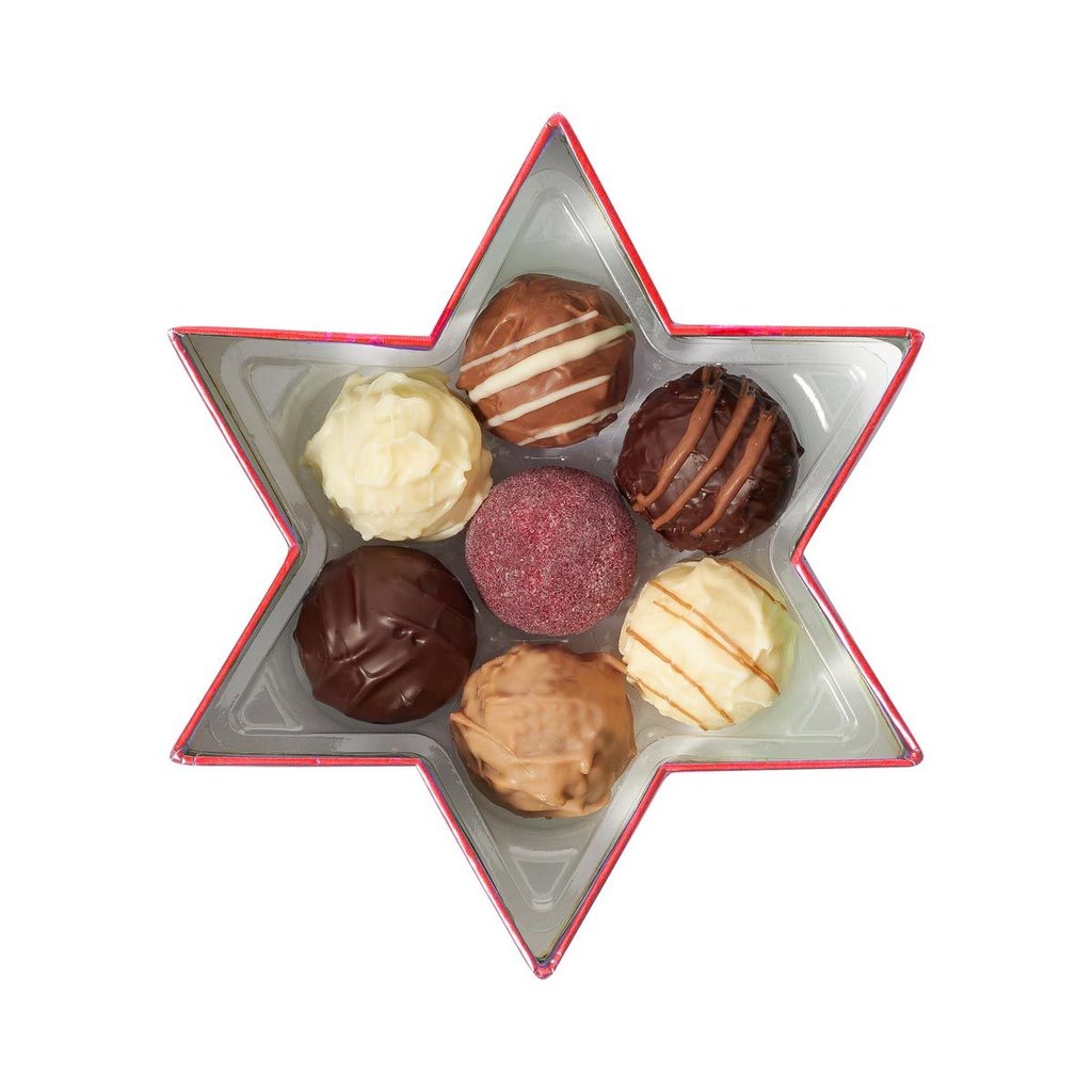 Die feine Trüffelmischung ist besonders ansprechend in einer weihnachtlichen Sterne-Box verpackt.
