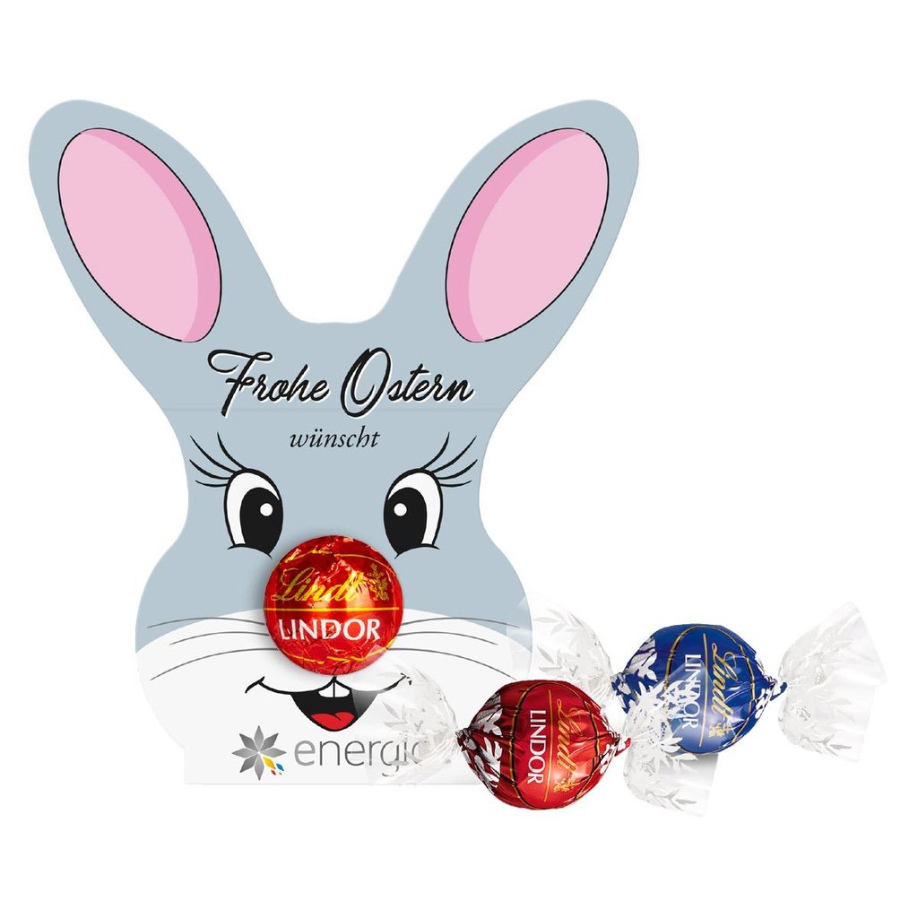Inhalt: feine Lindorkugel in Werbekartonage mit individuellem Logo