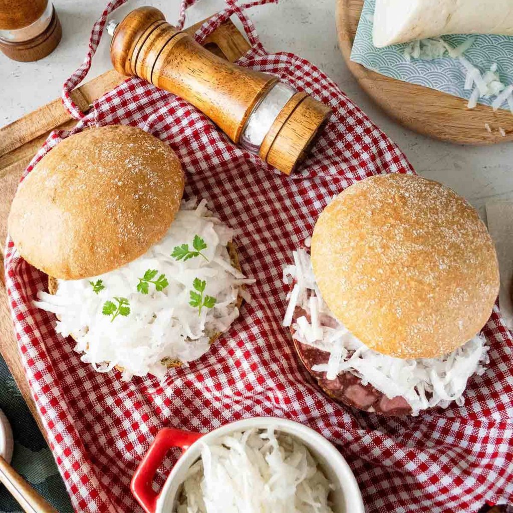 Kräftig im Geschmack, aromatisch und zu 100 % natürlich. Unser Roggen-Burger-Brötchen ist die perfekte Basis für anspruchsvolle Burger-Kreationen. Das saftige Bun in feinster Roggen-Qualität ist bereits fertig gebacken, vorgeschnitten und im Handumdrehen servierbereit.