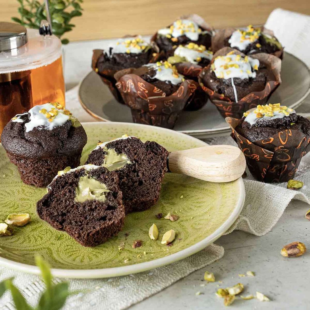 - Schokomuffin gefüllt mit trendiger Pistaziencreme