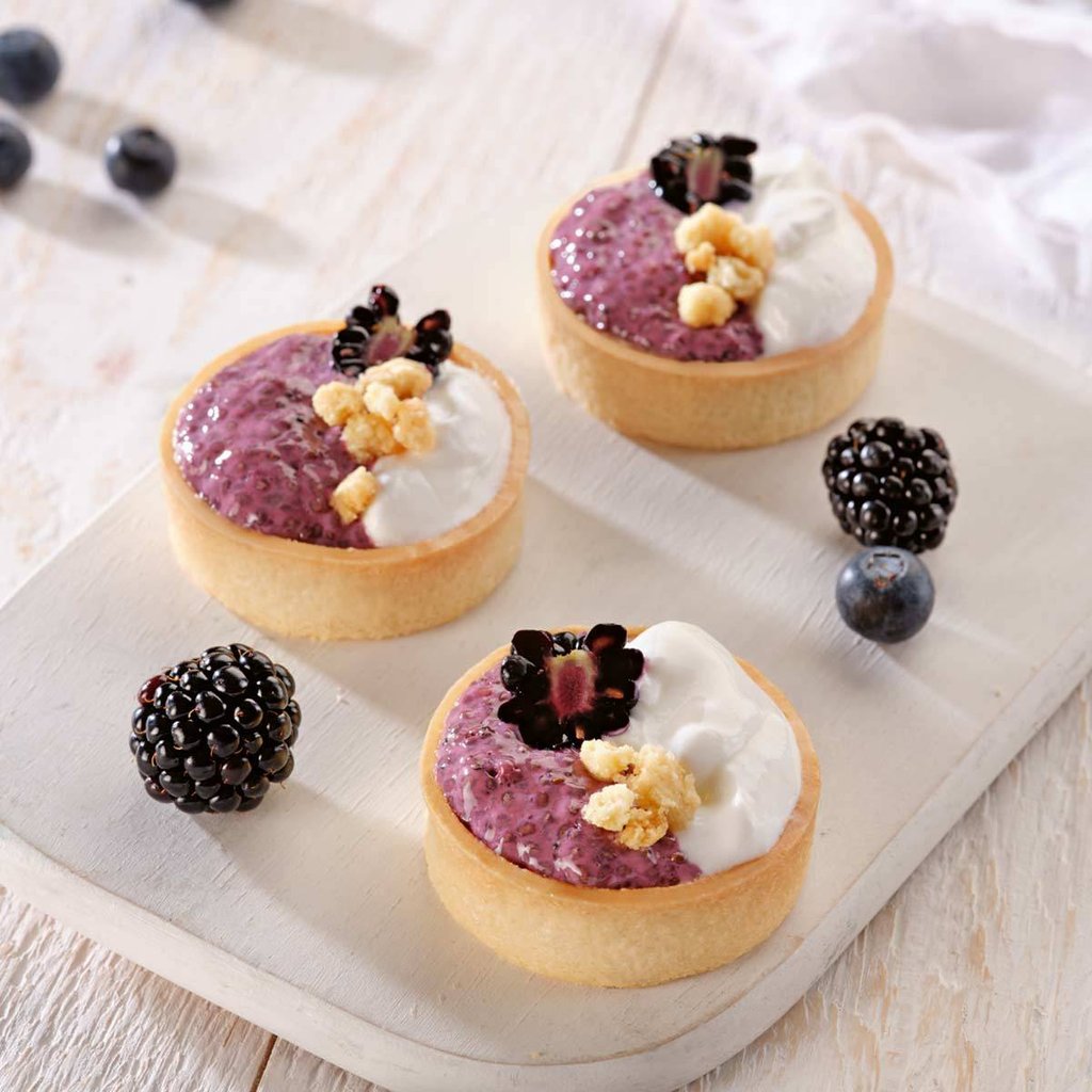 Die veganen Dessert-Tartelettes sind aus zartem, süßem Mürbeteig gebacken und eignen sich ideal für süße Füllungen. Sie sind vielfältig einsetzbar - als Komponente auf dem Dessertteller und durch die lange Standfestigkeit für Buffets, Flying Buffets und bei Stehempfängen.
