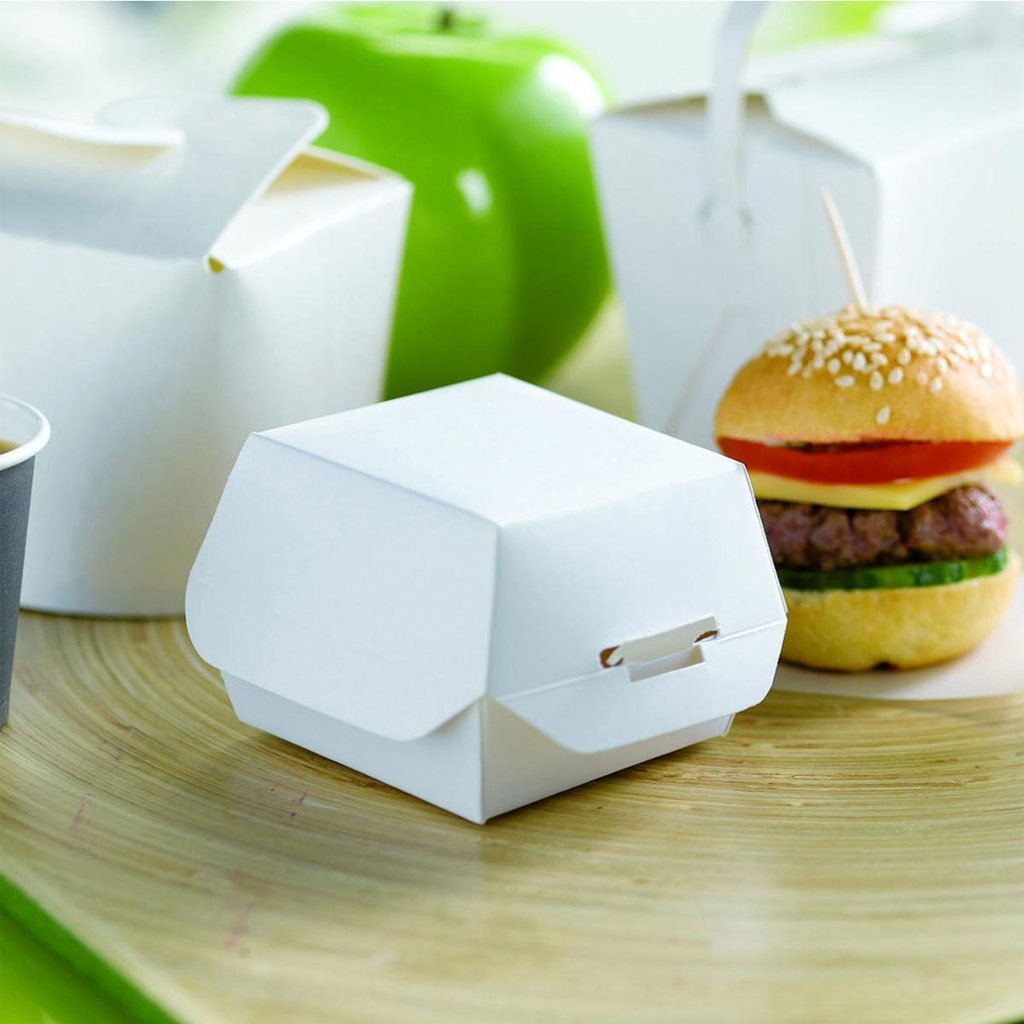 Lassen Sie Ihren Snack zum echten Trendsetter werden. Die Mini-Verpackung in neutraler Optik passt zu jedem Snack-Produkt, wie z. B. Burger, Nuggets oder Pommes.