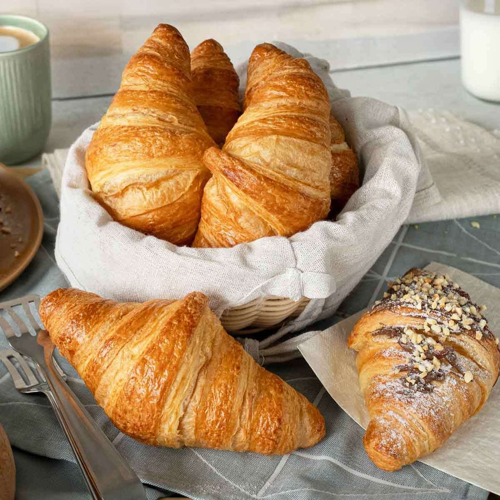 Servieren Sie Gäste und Kunden zum Frühstück ein feinblättriges Butter-Croissant aus französischer Butter in bester Qualität. Die köstlichen Hörnchen schmecken nicht nur mit fruchtigen Konfitüren sondern auch herzhaft belegt mit Lachs oder Schinken.