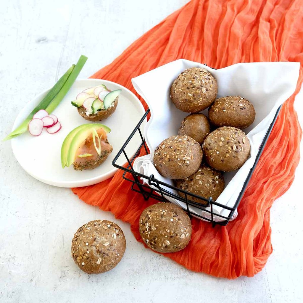 Vollmundiges Aroma und dennoch ein wertvoller Beitrag zur Gesundheit - unser kerniges Malzkornbrötchen im Mini-Format ist die perfekte Ergänzung für Ihr Sortiment! Hergestellt aus einer ausgewogenen Mischung an vollwertigem Weizenschrot, gesunden Sonnenblumenkernen und feinster Leinsaat, unterstützt das kleine Brötchen Kunden und Gäste bei ihrer gesunden Ernährung. Abgerundet mit einem ballaststoffhaltigen Dekor aus Sesam, Buchweizen sowie Roggenflocken ist das Mini-Gebäck jedoch auch eine optimale Beigabe zu herzhaften Speisen wie Suppen, Salate und Co.