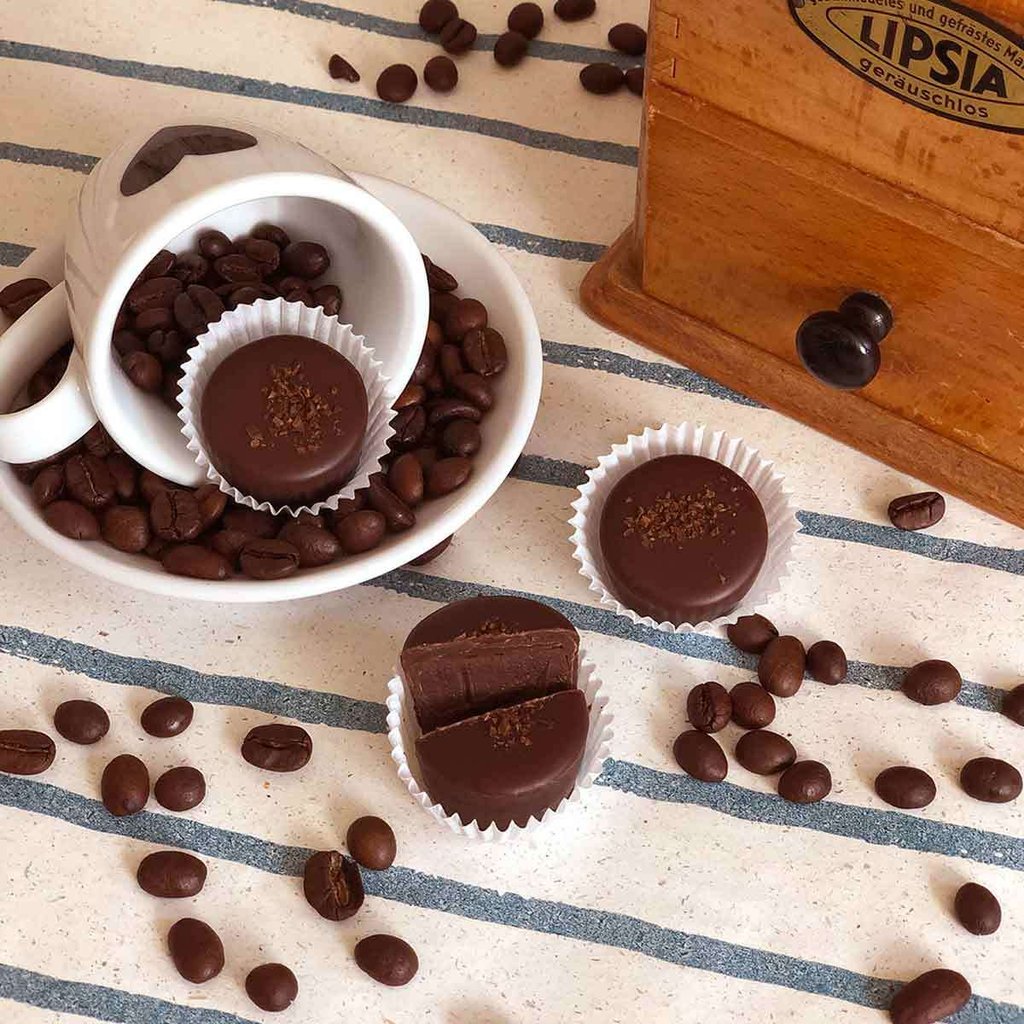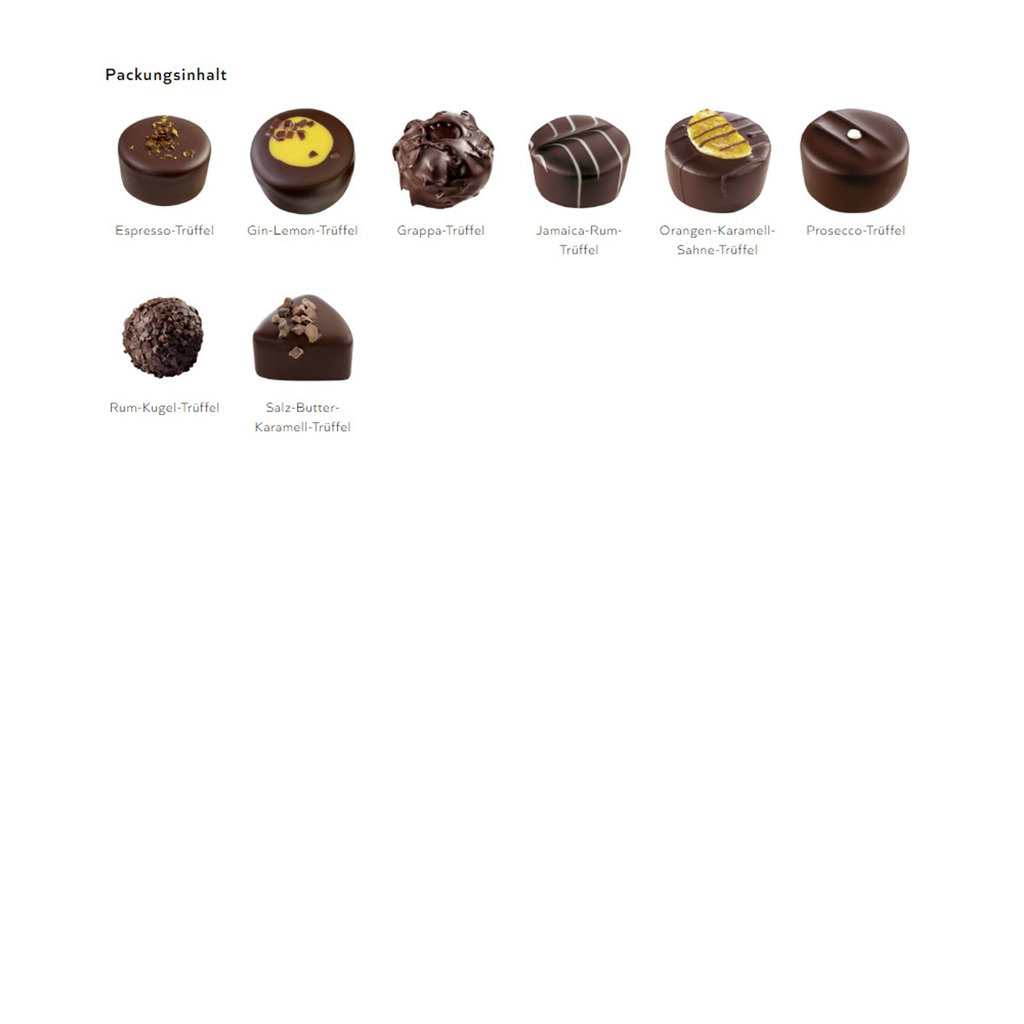 Diese abwechslungsreiche Trüffel- und Pralinen-Mischung besteht aus acht feinen, handgemachten Sorten umhüllt mit Zartbitter-Schokolade.