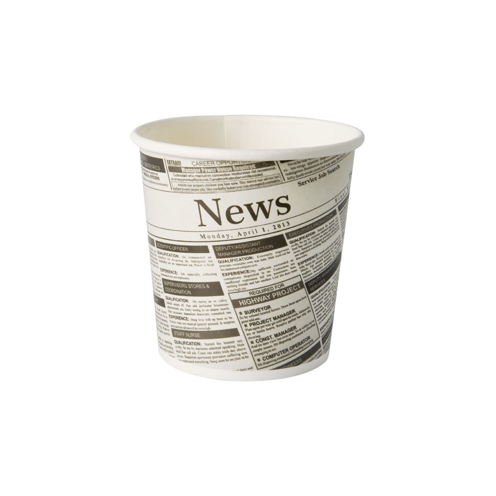 Die Becher aus Karton im neutralen und modernen Zeitungs-Look können vielfältig eingesetzt werden.