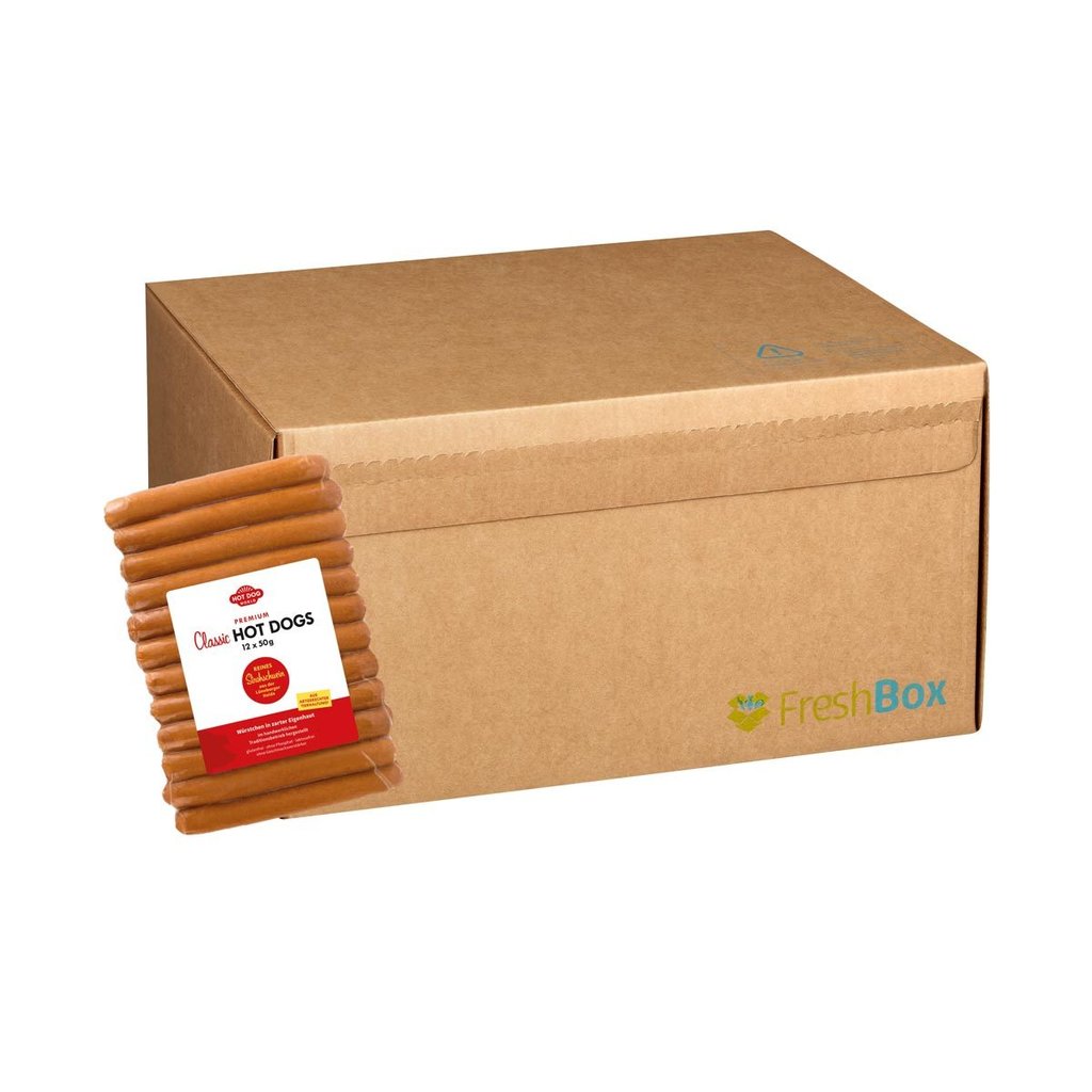 Alles, was Sie für die Zubereitung leckerer Hot Dogs benötigen, finden Sie in diesem Mischkarton.