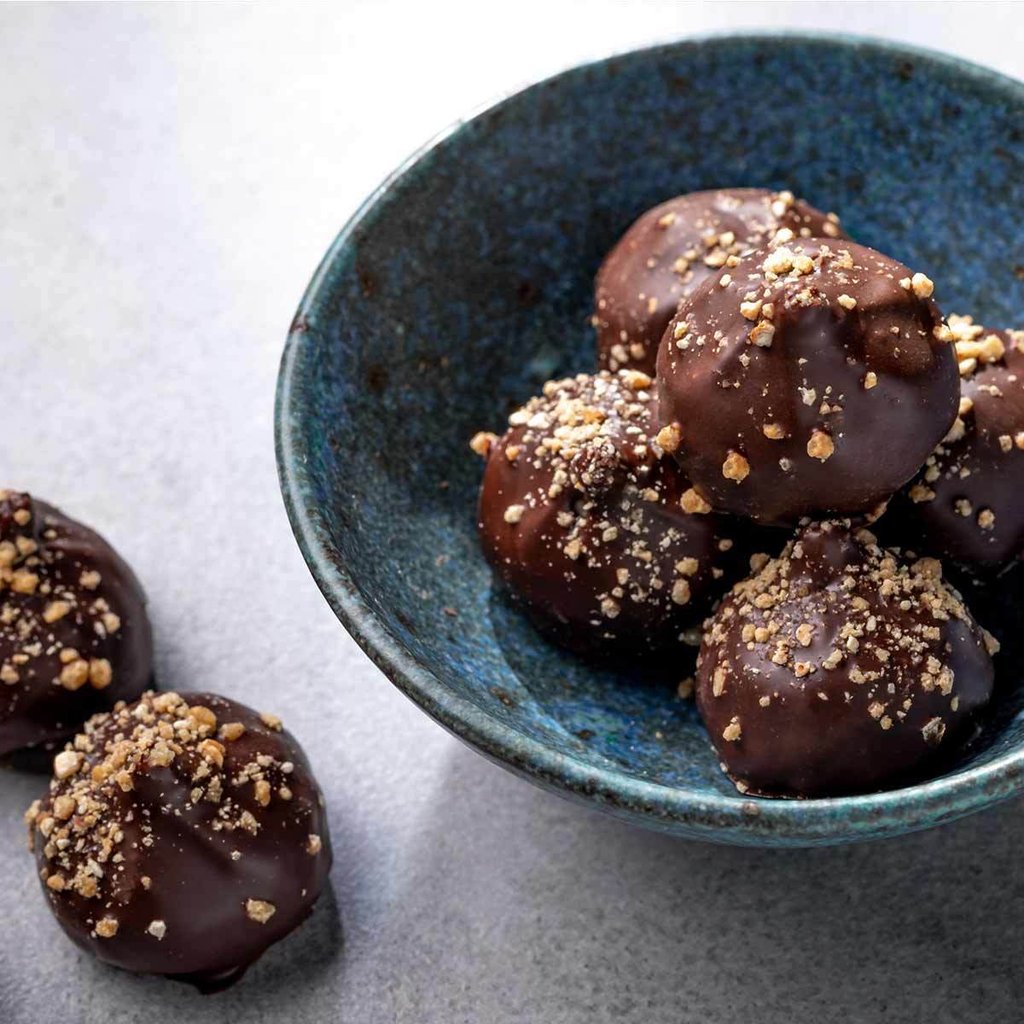 Diese leckeren Pralinen sind gefüllt mit Cremes aus Haselnuss-Nougat, heller Haselnuss-Nougat und dem Kern aus Nuss-Nougat sowie ummantelt mit Marzipan und einer feinen Zartbitterschokolade. Für Ihre Kunden und Gäste sind die Nuss-Nougat-Pralinen ein herrlicher Genuss.