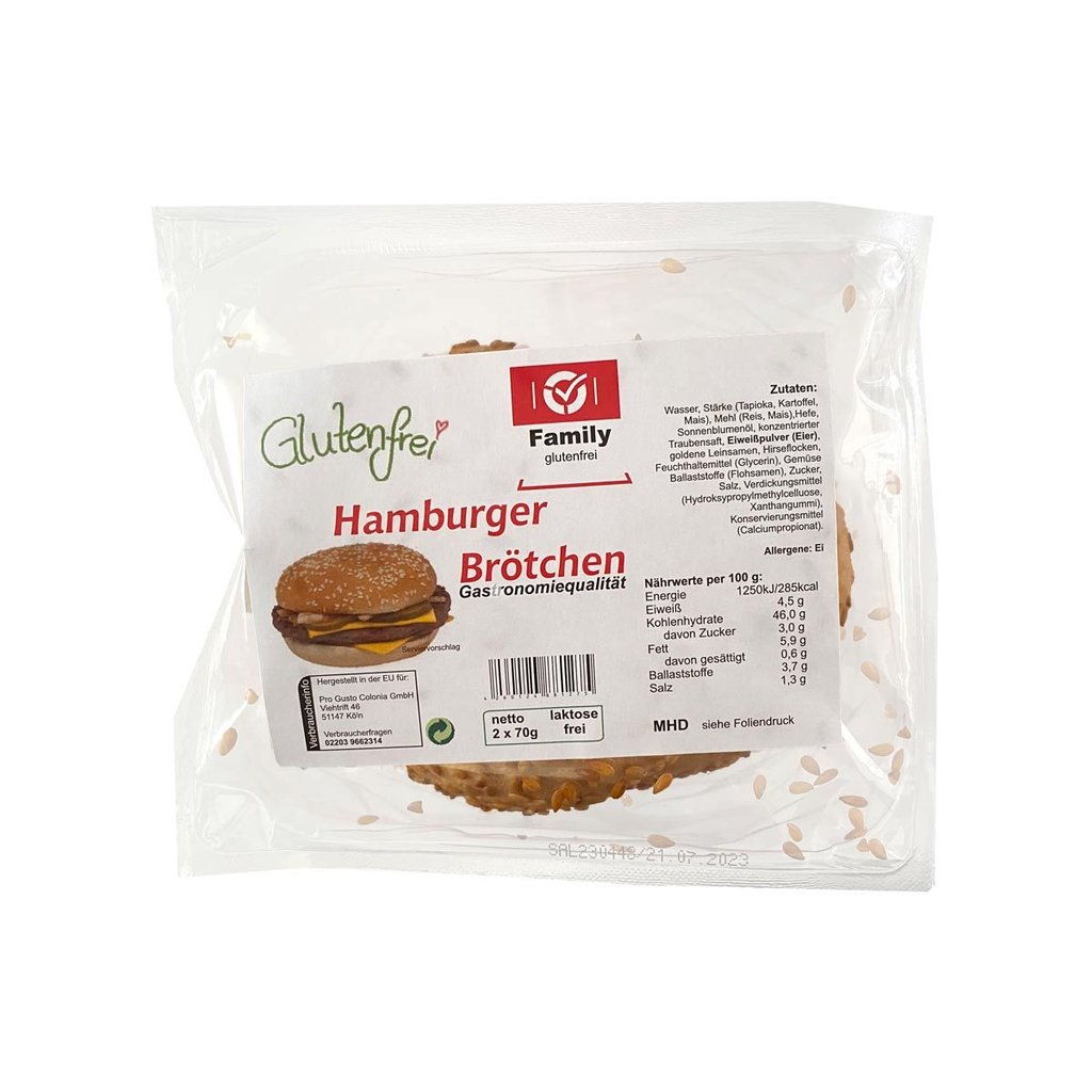 Dieses glutenfreie Hamburger-Brötchen wird aus Reis- und Maismehl gebacken und eignet sich perfekt für Gäste mit Zöliakie oder einer glutenfreien Ernährung. Verfeinert mit goldenen Leinsamen, erhält das Brötchen einen dezenten, amerikanischen Touch und überzeugt durch Geschmack und Textur.