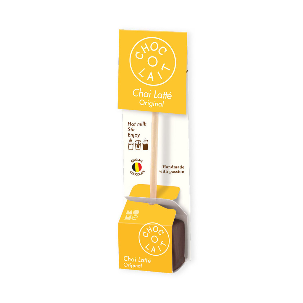 Hochwertige Trinkschokolade am Stiel sorgt für eine ungewöhnliche Servierart. Ein herrlicher Genuss aus reinem Kakao, einem Kern aus Ganache sowie orientalischem Chai-Latte-Geschmack.