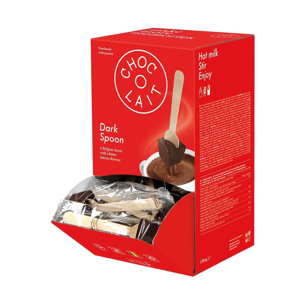Auf dem praktischen Holzlöffel wartet feinste belgische Zartbitterschokolade, dass diese von Ihren Kunden und Gästen in heiße Milch getaucht wird. Ein Trinkgenuss in 2-3 Minuten fertig zum Naschen.