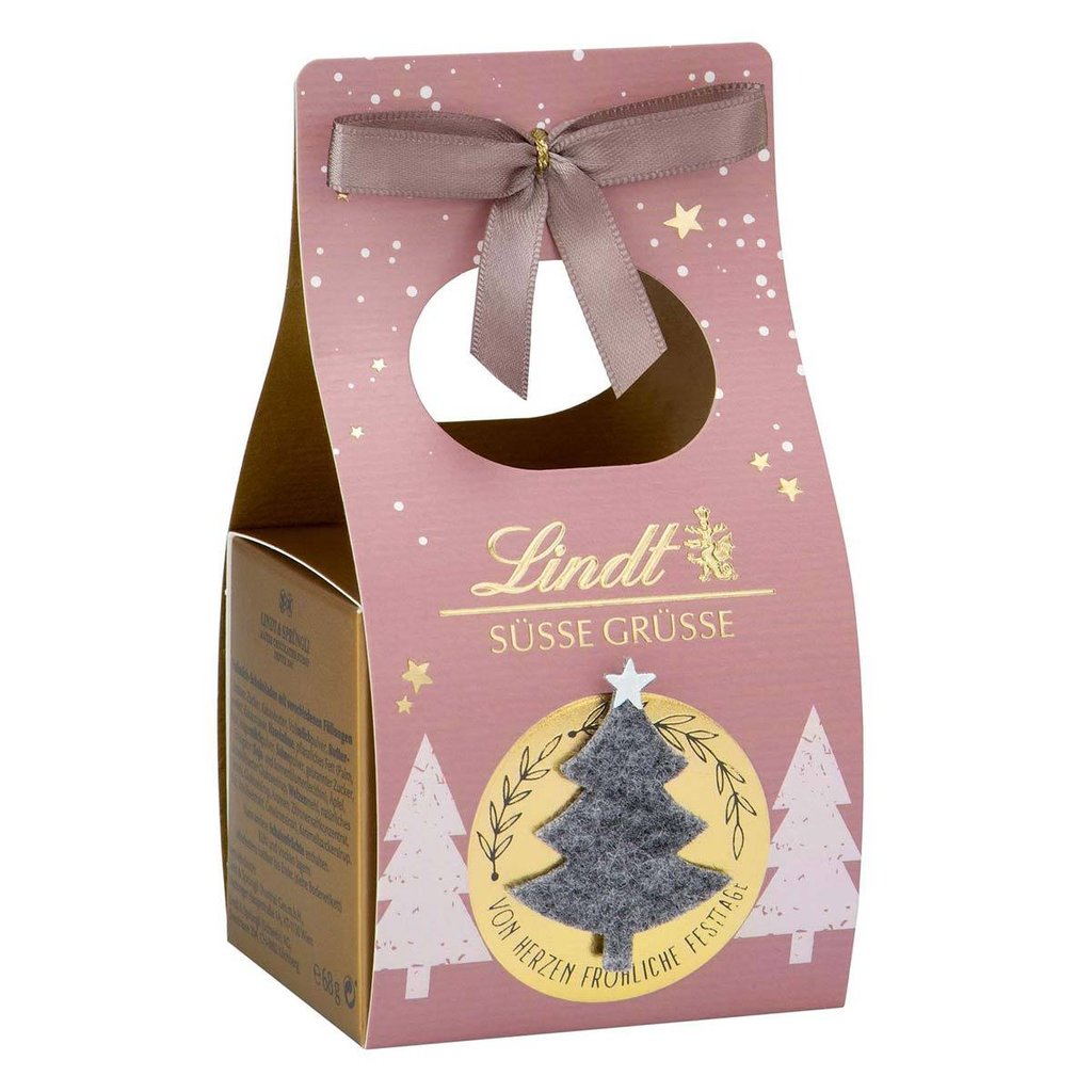 Das weihnachtliche Präsent in niedlicher Taschenform enthält 6 köstliche Pralinen. Mit dem modernen Design und der festlichen Filz-Applikation eignet es sich ideal für Kunden- oder Mitarbeitergeschenke. Gefüllt mit einer feinen Auswahl an Lindt Kugeln überzeugt das Präsent geschmacklich wie optisch.