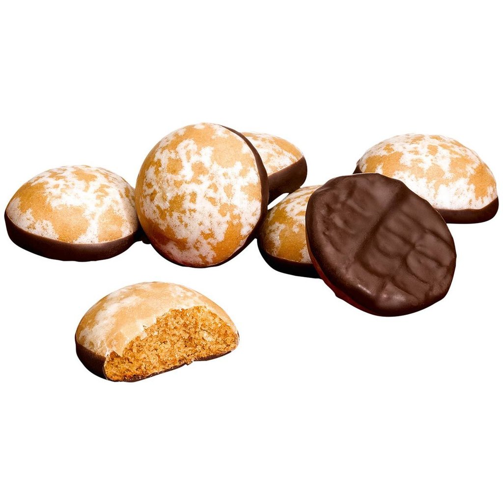 Bezeichnung des Lebensmittels: Runde braune Lebkuchen mit edelherber Schokolade