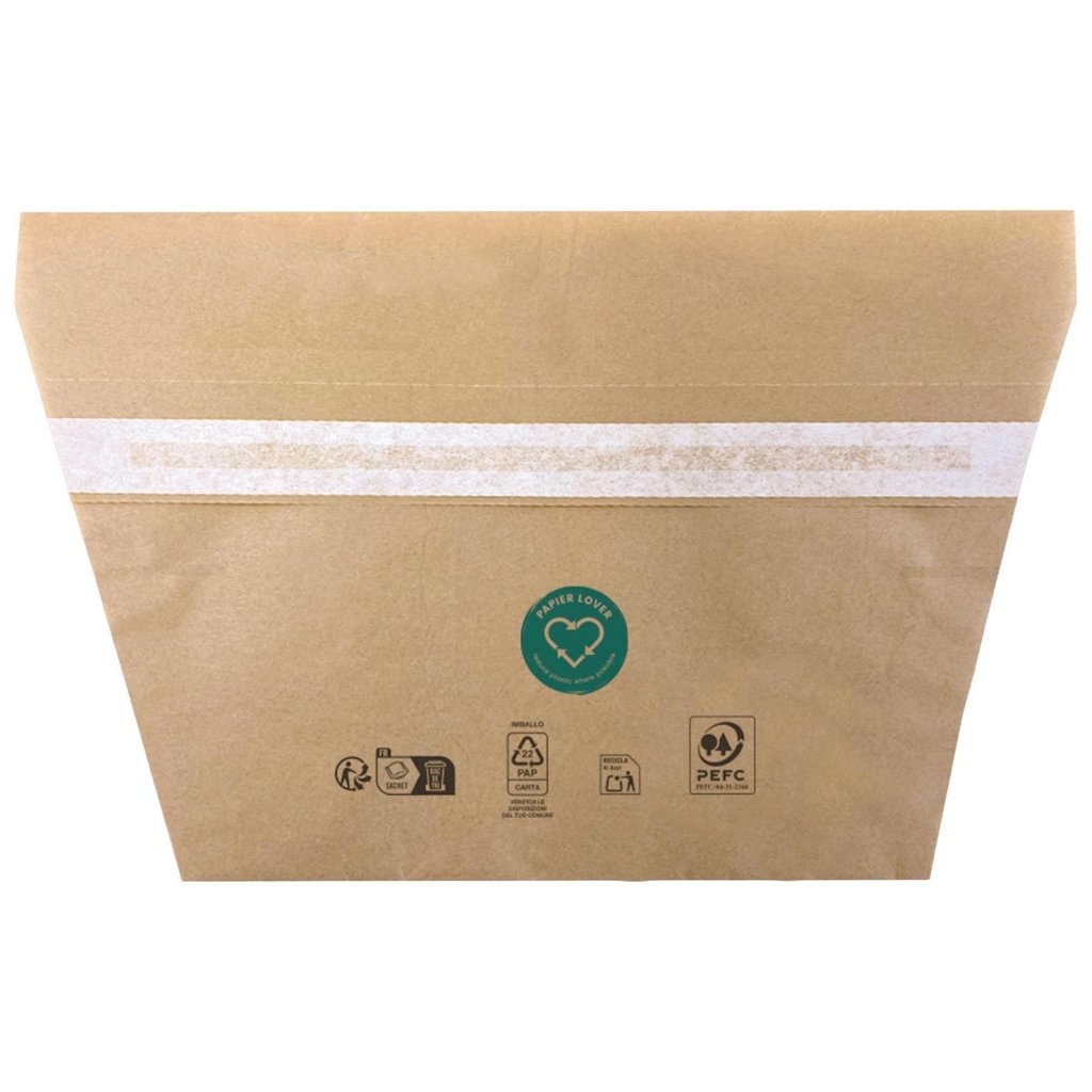 Umweltfreundliche Verpackungslösung aus nachwachsenden Rohstoffen – ideal für warme und fettige Snacks, z.B. Panini und Döner. Das doppellagige, fettdichte Papier hält Speisen frisch und hygienisch verpackt. Mit praktischem Selbstklebeverschluss, Serviettenfach und Aufreißhilfe für einfaches Handling.