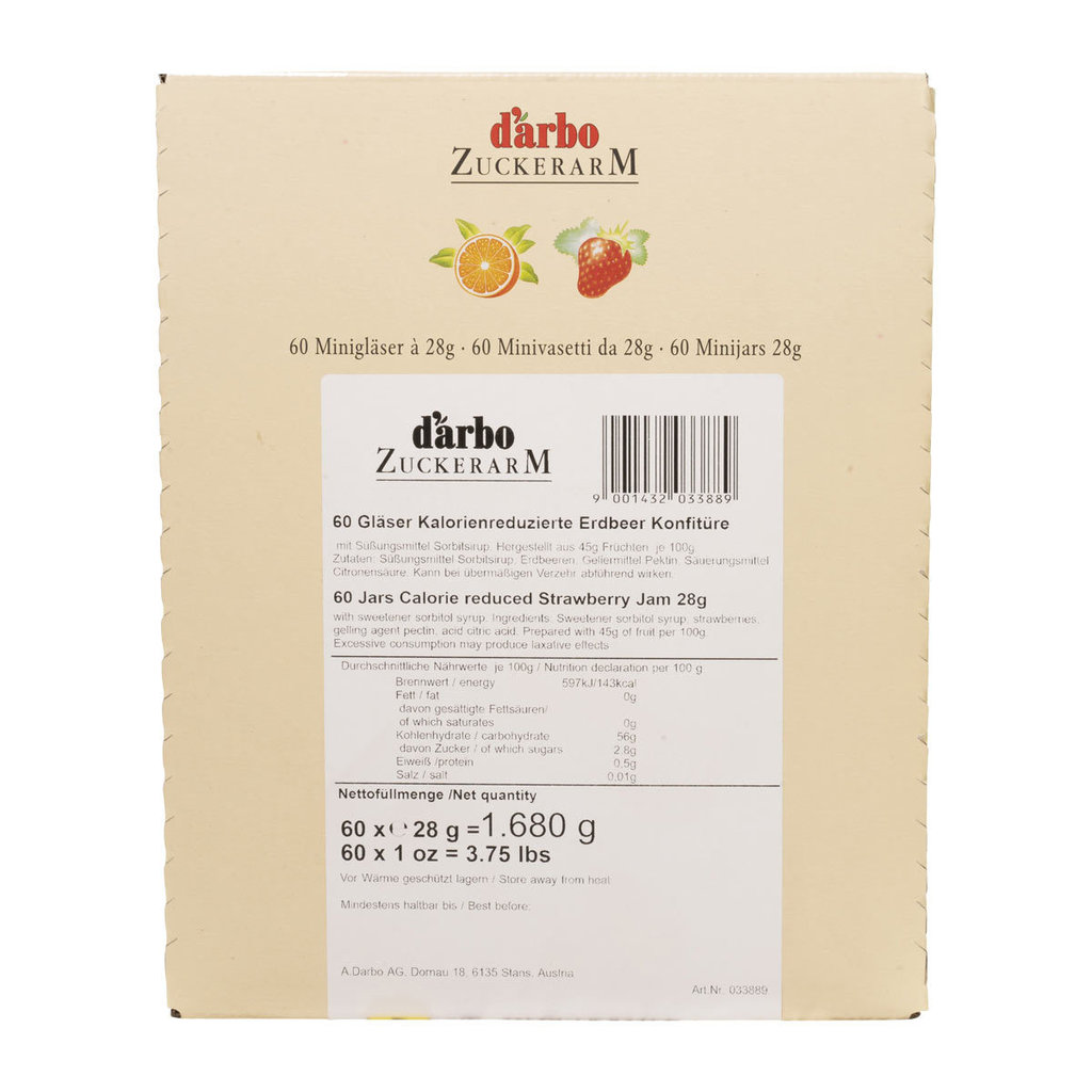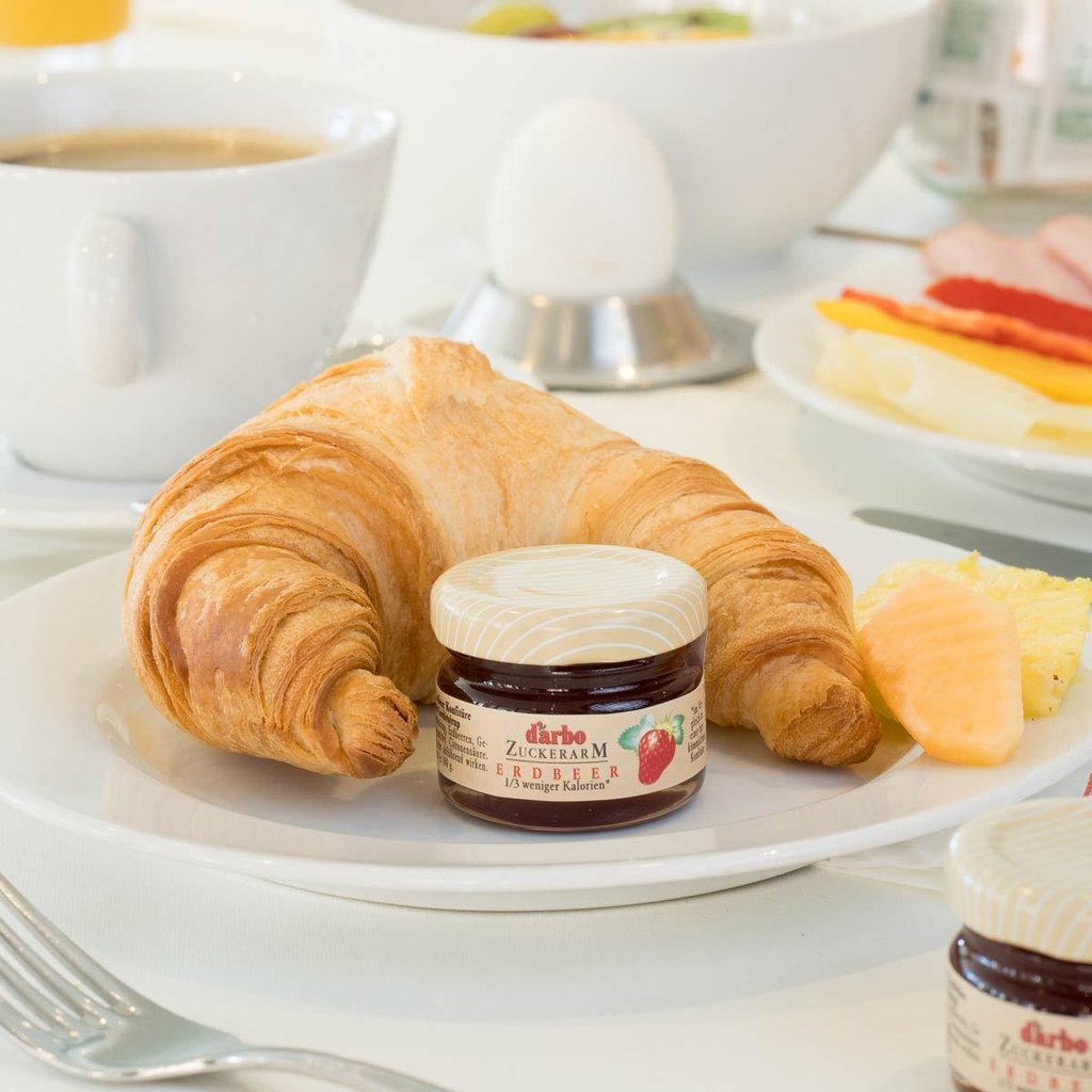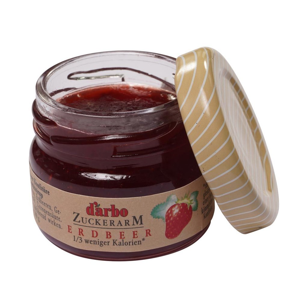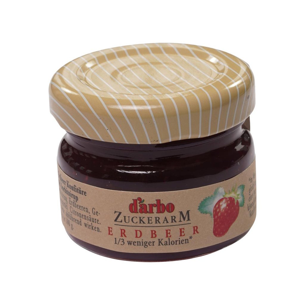 Die zuckerarme Erdbeer Konfitüre von Darbo überzeugt durch seine tiefrote Farbe, das volle Aroma sowie den besten Früchten. Mit dem praktischen Minigläschen erhalten Ihre Kunden und Gäste am Frühstücksbuffet einen gesunden und kalorienarmen Aufstrich.