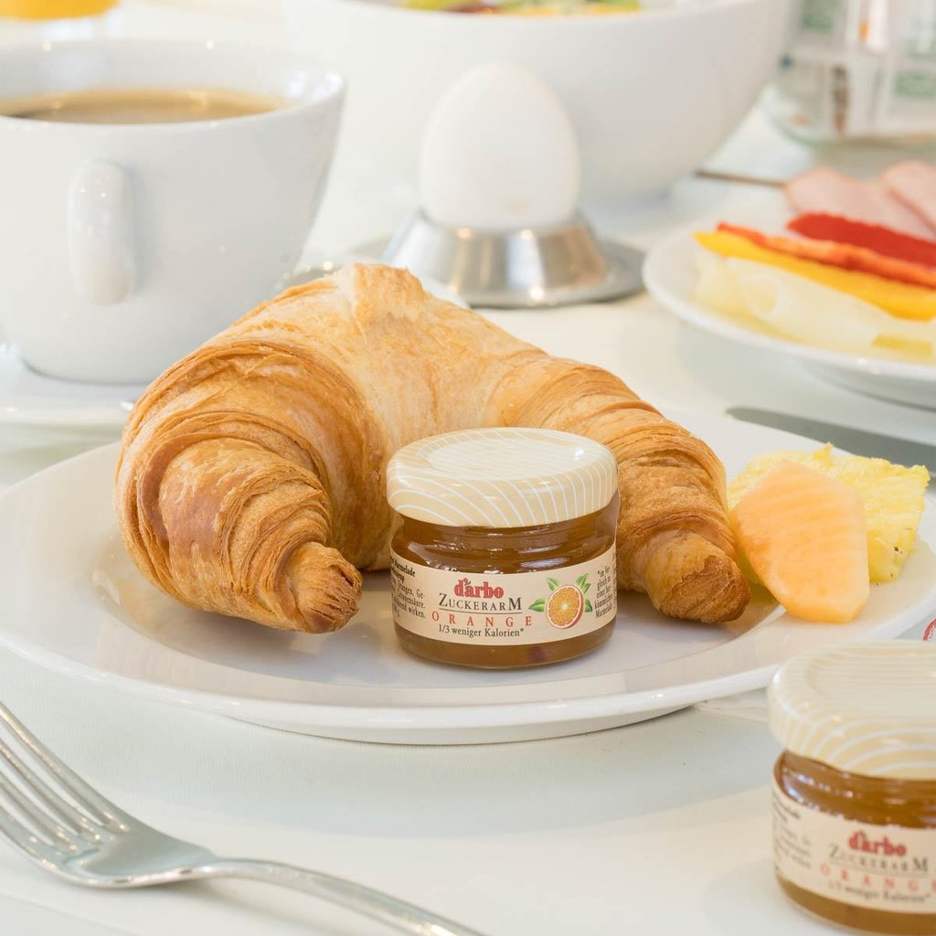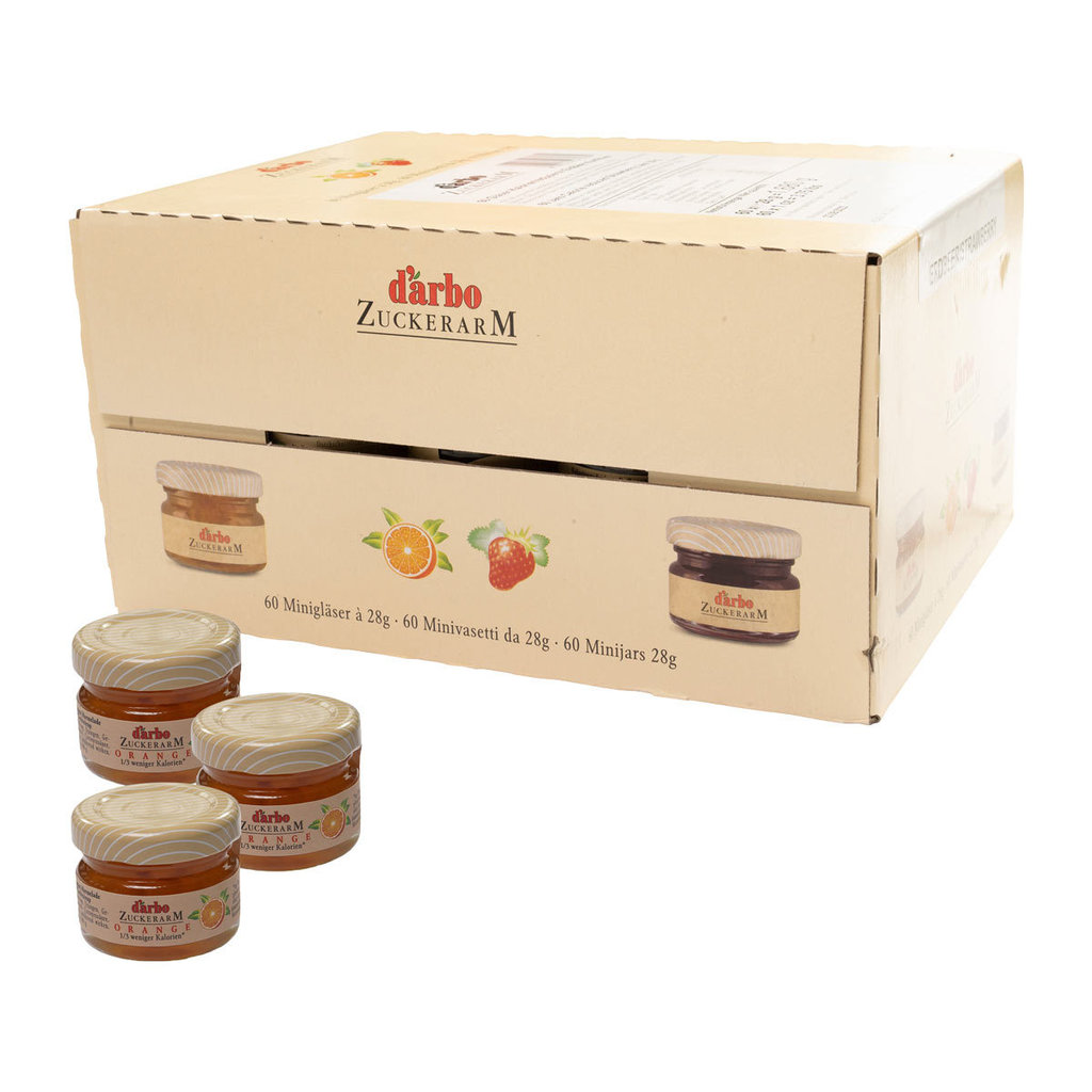 Die zuckerarme Bitter Orange Marmelade von Darbo überzeugt durch seine gold-gelbe Farbe und das süß-säuerliche Aroma. Im praktischen Miniglas erhalten Ihre Kunden und Gäste am Frühstücksbuffet einen gesunden und kalorienreduzierten Aufstrich, ob für Brot und Toast oder zum süßen von Joghurt, die Marmelade kann für vieles verwendet werden.