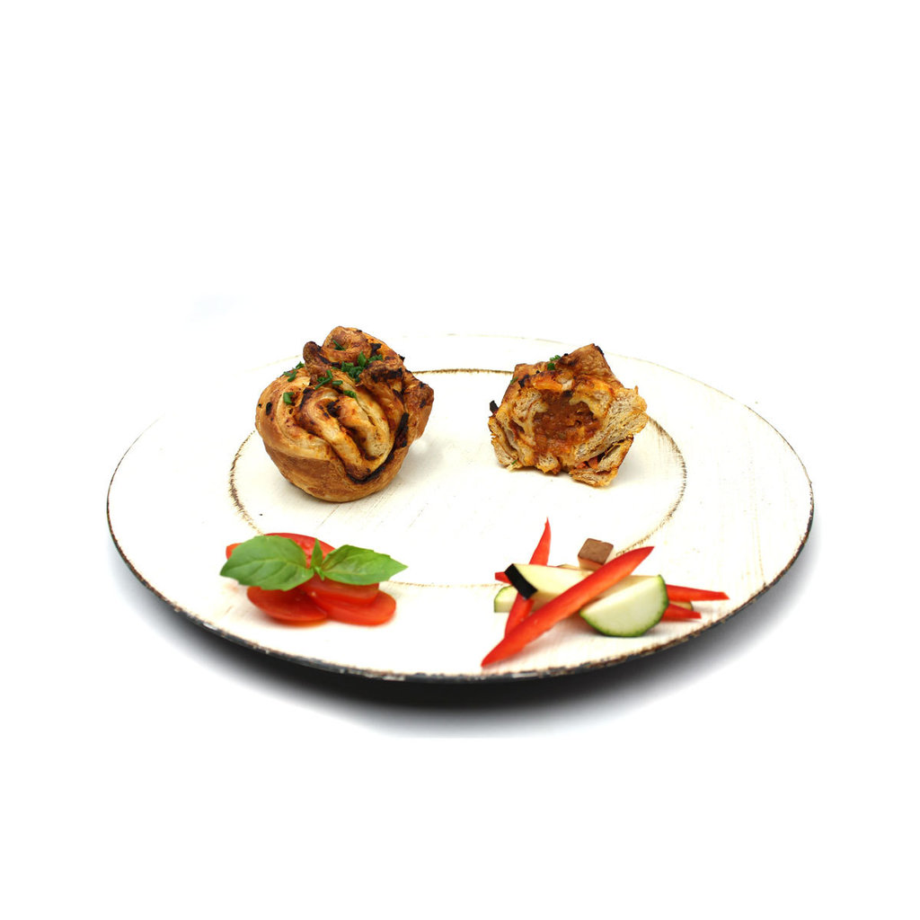 Ausgefallener Ratatouille-Spluffin mit leckerer Füllung aus Tomate, Zucchini, Möhren, Champions und Aubergine, sowie aromatischen Kräutern.