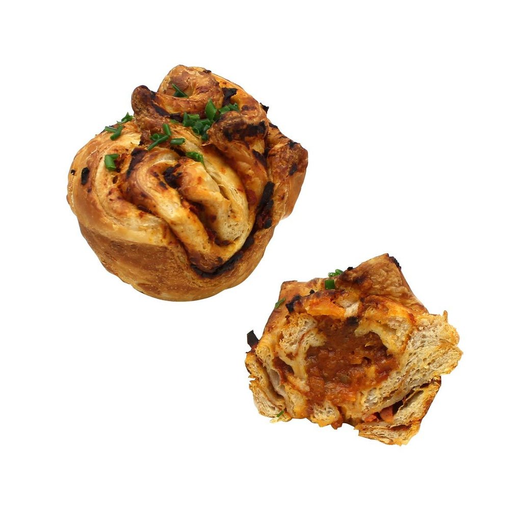 Gefülltes Gebäck aus dem traditionellen Berliner Splitterbrötchen in Form eines Muffins.