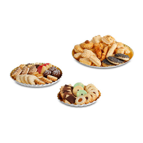 Sehr stabiler Teller zur Präsentation und Verkauf von Gebäck, wie z. B. Weihnachtsplätzchen oder geschnittenen Stollen und Pralinen.