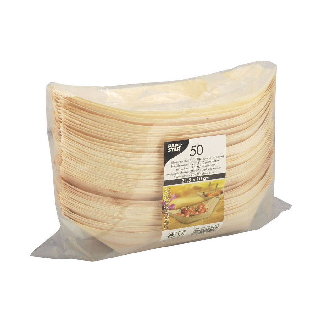 Dieses schlanke Holz-Schiffchen eignet sich besonders zur ansprechenden Warenpräsentation auf Veranstaltungen. Ob auf Trend-Events wie Street-Food oder Jahrmärkten, in den robusten Holzbooten können Sie Ihre Köstlichkeiten sicher und verzehrbereit anbieten. Servieren Sie ausgefallene Fingerfood-Spieße, gebratene Würste oder knusprige Potatoe Wedges in diesen dünnwandigen Holzschalen, die zudem vollständig kompostiert werden können.