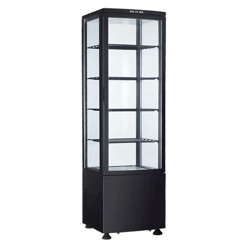 Die Umluftkühlvitrine mit ca. 235 Liter großem Volumen eignet sich zur Präsentation und Kühlung größerer Mengen. Die Innenbeleuchtung lässt Ihre Sandwichs, Obst und Kuchen in besonders gutem Licht erstrahlen. Sie können mit den drei verstellbaren Rosten eine flexible Bestückung vornehmen. Durch die Vier-Seiten-Doppelverglasung wird immer eine perfekte Einsicht auf das Produkt ermöglicht und lässt das Gerät kostensparend und energieeffizient arbeiten.