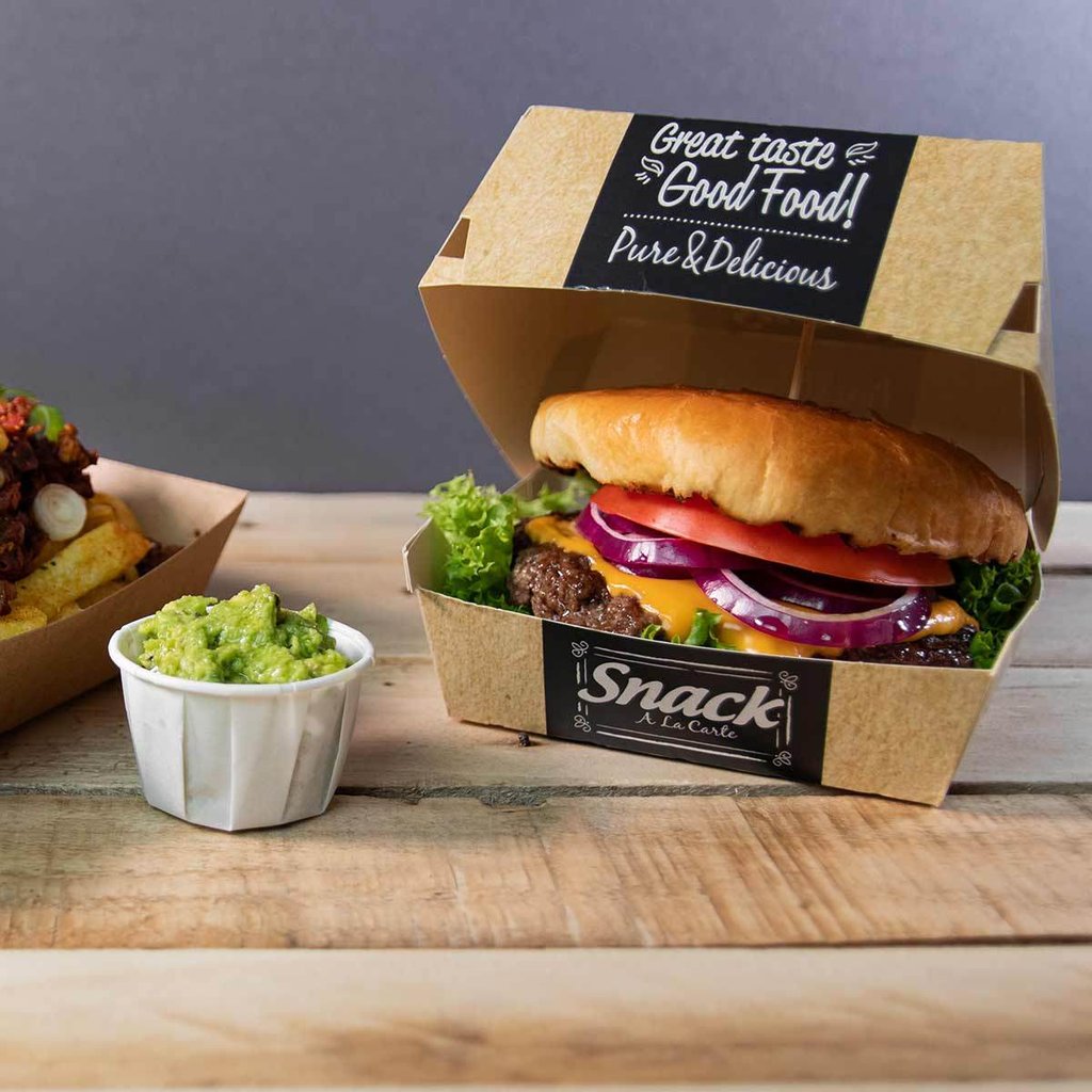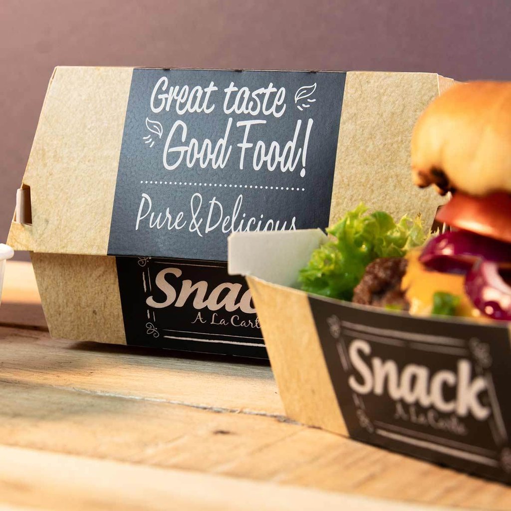 Verpacken Sie Ihre XXL-Burger, Sandwiches oder Snacks in dieser umweltfreundlichen Hamburgerbox mit praktischem Klappdeckel.