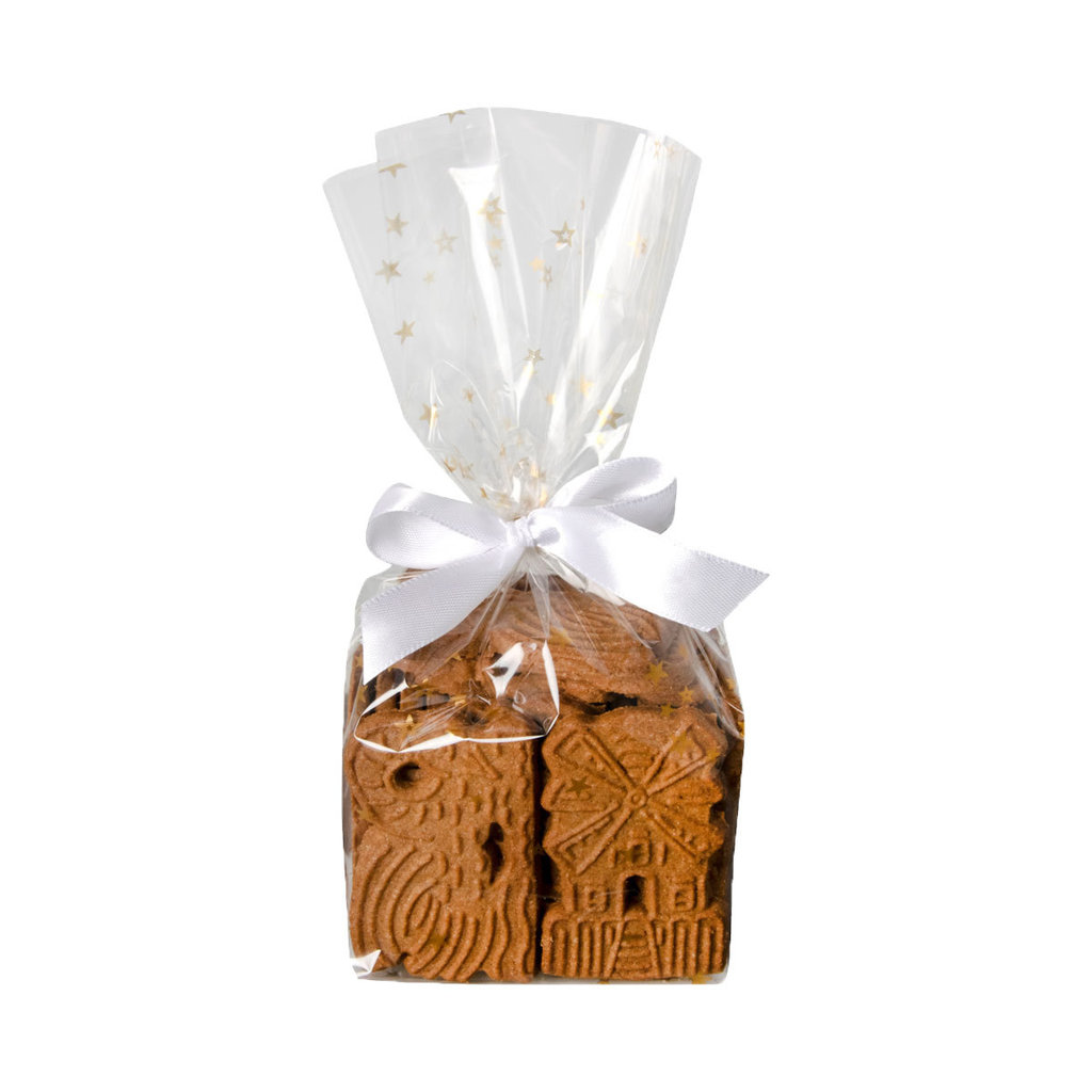 Transparenter Beutel mit weihnachtlichem Design für ein einfaches und dekoratives Verpacken von Gebäck, wie z.B. Spekulatius, Lebkuchen und Plätzchen.